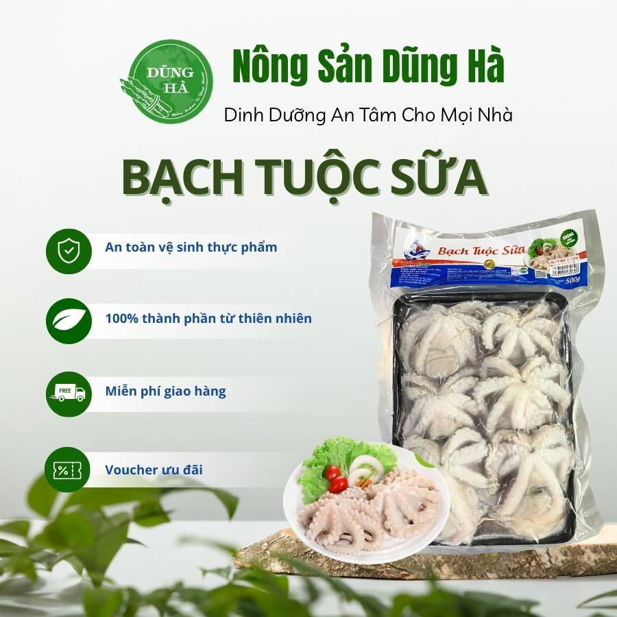 Bạch tuộc sữa là loại hải sản tươi ngon, có kích thước nhỏ, thịt trắng giòn ngọt và hương vị đậm đà tự nhiên. Sản phẩm thường được dùng để chế biến nhiều món ăn hấp dẫn như nướng, xào, lẩu hay hấp, mang lại trải nghiệm ẩm thực thơm ngon, bổ dưỡng và giàu đạm.