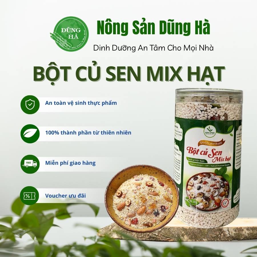 Bột củ sen hạt mix là sự kết hợp hoàn hảo giữa bột củ sen nguyên chất và các loại hạt dinh dưỡng như hạnh nhân, hạt óc chó, hạt chia, hạt điều… Tạo nên món uống thơm ngon, giàu dưỡng chất, phù hợp cho mọi lứa tuổi, đặc biệt là người ăn chay, ăn kiêng hoặc cần bồi bổ sức khỏe.
