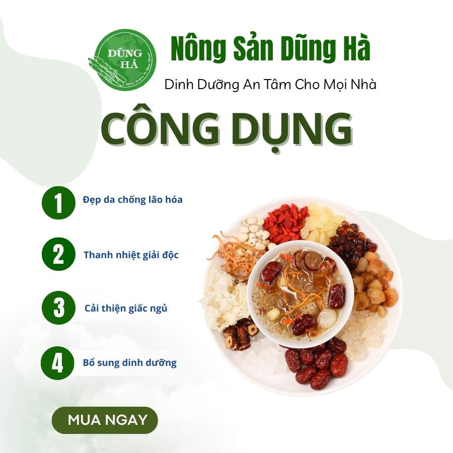 Ngâm các nguyên liệu khô (nhựa đào, tuyết yến, nấm tuyết…) 8–10 tiếng cho nở đều