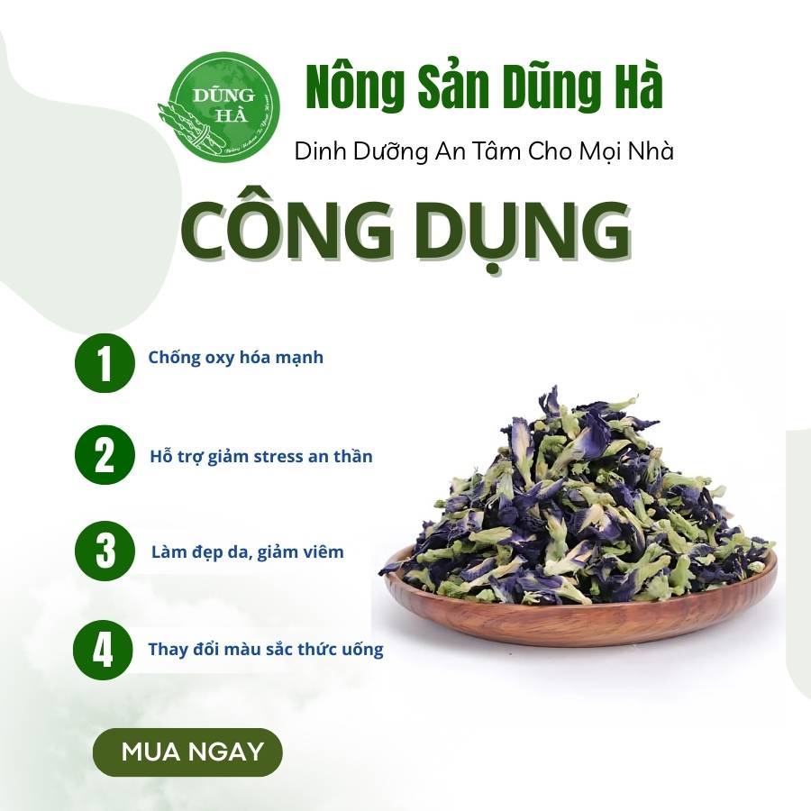 Ưu điểm: Giàu anthocyanin và chất chống oxy hóa; giúp làm đẹp da, hỗ trợ sáng mắt, cải thiện trí nhớ và giảm căng thẳng. Ngoài pha trà, còn được dùng tạo màu tự nhiên cho món ăn, đồ uống.